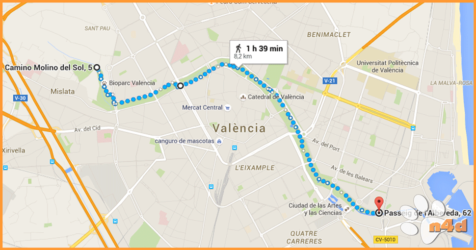 El antiguo cauce del Río Turia, nuestro Jardín y pulmón vegetal de Valencia, con 8 km de recorrido, es el lugar ideal para dar un paseo con nuestra mascota y, aunque lo debemos llevar atado, hay dos puntos en el que, no sé si es que la policía se hace la vista gorda o nosotros los dueños nos hacemos lo locos con la policía, el caso es que podemos soltarlos y que vayan un poco a sus anchas. El primero es el lateral derecho del Lago del Parque de Cabecera y el segundo la Fuente de Neptuno al lado de la Ciudad de las Ciencias, ambos un paraíso para los perros, sobretodo, si como al mío, les gusta el agua.